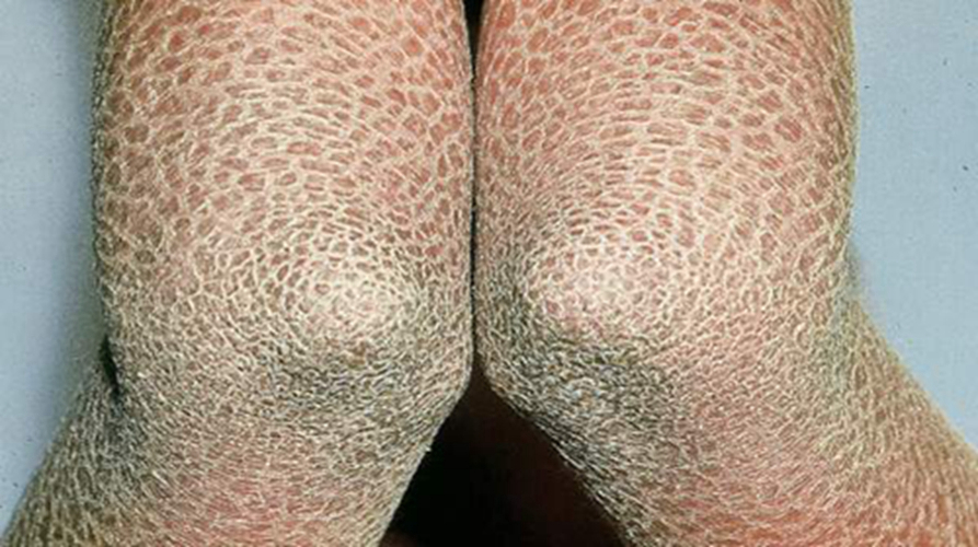 這是最常見的一種類型,表現(xiàn)為皮膚干燥,尤其是在四肢伸側(cè)和軀干更為顯著。患者皮膚上可見淺白色菱形或多角形鱗屑,邊緣略隆起,中央固定,如同魚鱗般排列。冬季時癥狀通常加重,皮膚干燥、脫屑明顯,而溫暖濕潤的季節(jié)癥狀可有所緩解。輕癥者可能只在冬季感到皮膚干燥,伴有少量鱗屑。